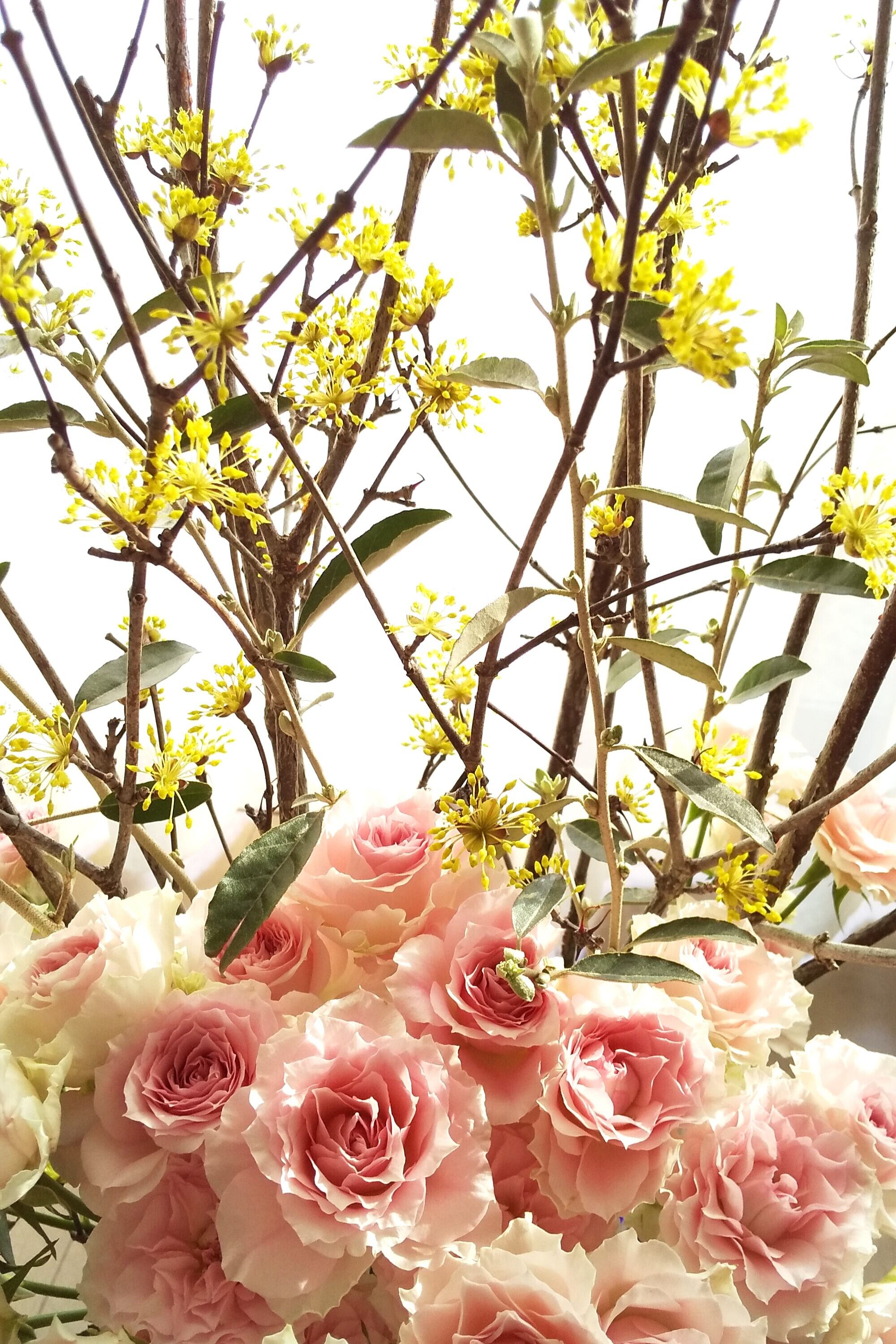 ・使用したお花・・・サンシュユ・バラ・ロシアンオリーブ
