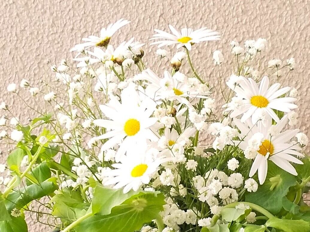 ・使用したお花・・・カスミソウ・マーガレット・えんどう豆のつる