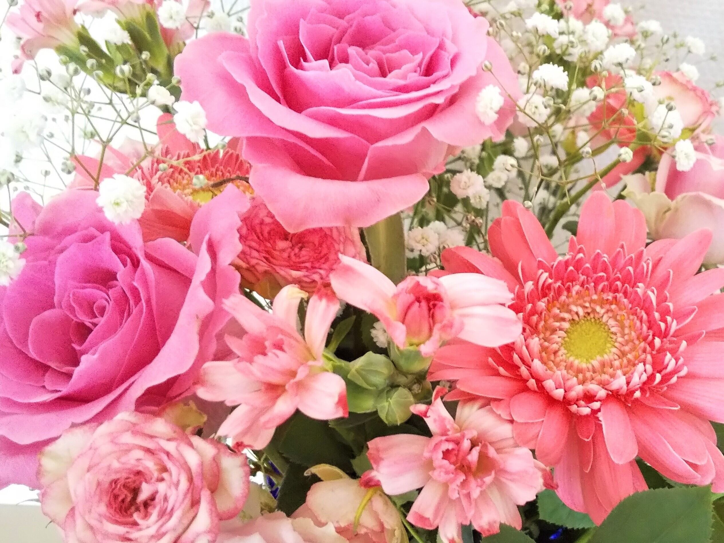 ・使用したお花&ストーン・・・バラ・ガーベラ・カーネーション・カスミソウ+ローズクオーツ