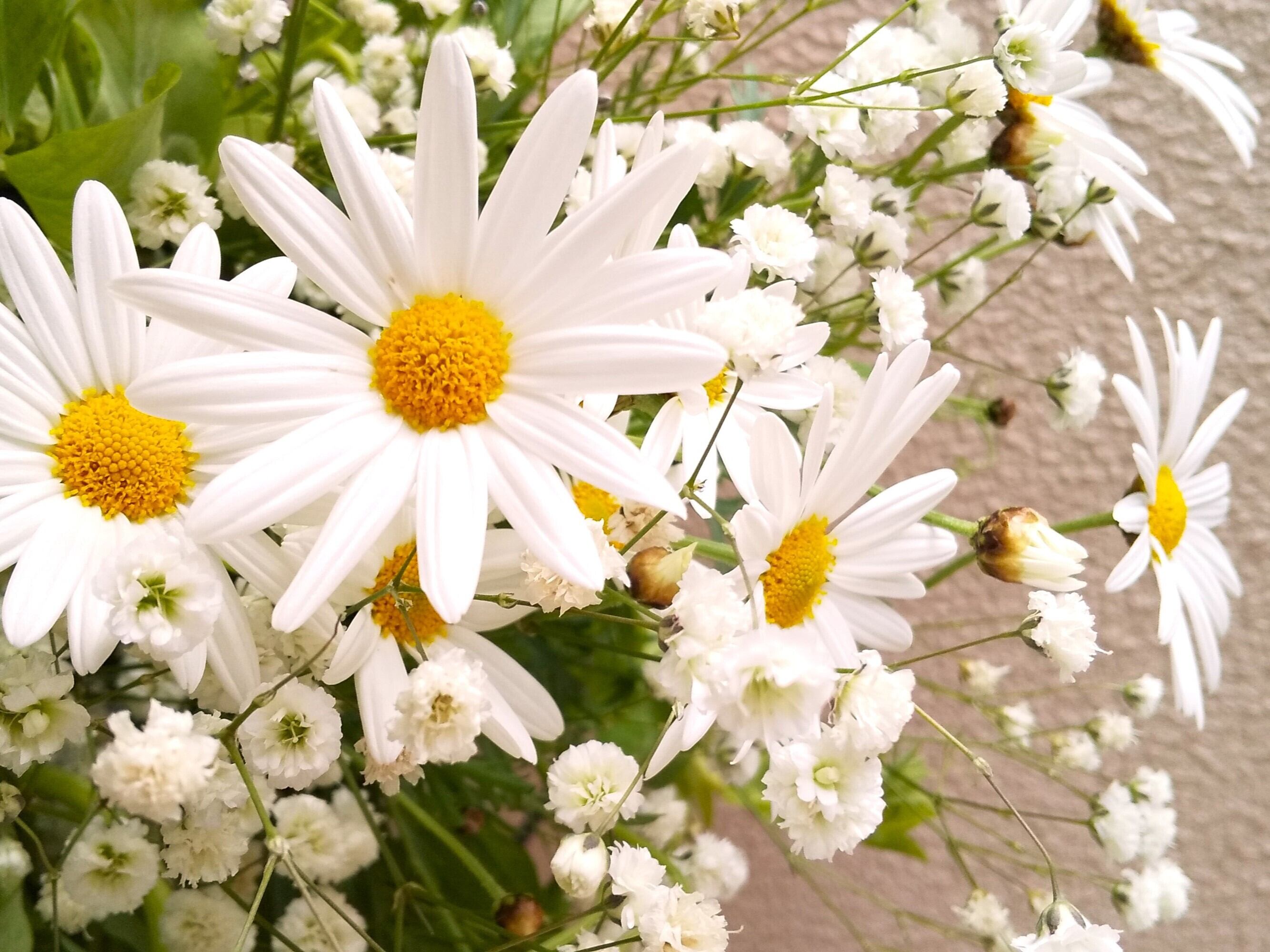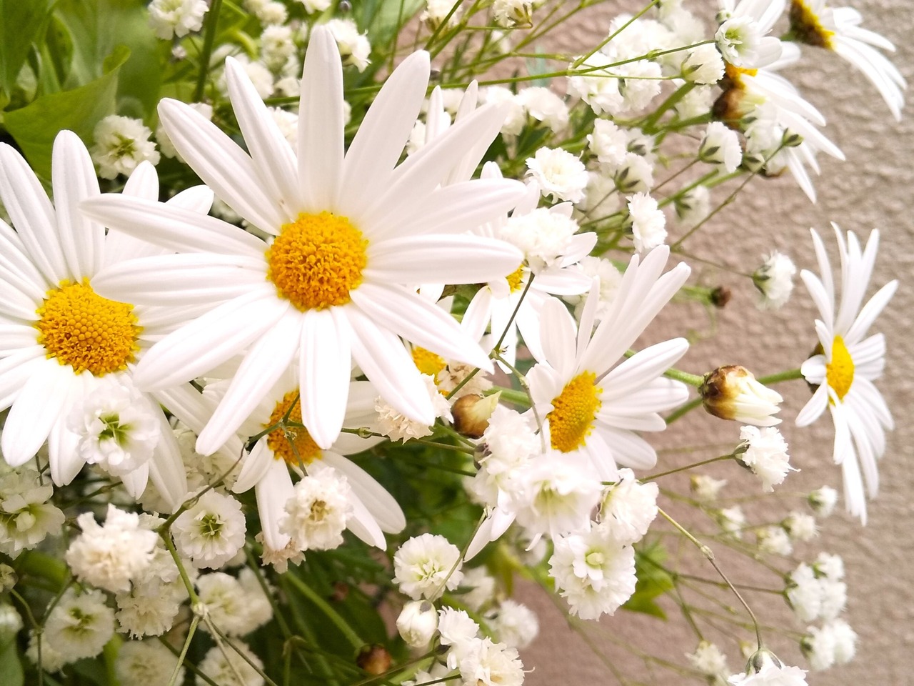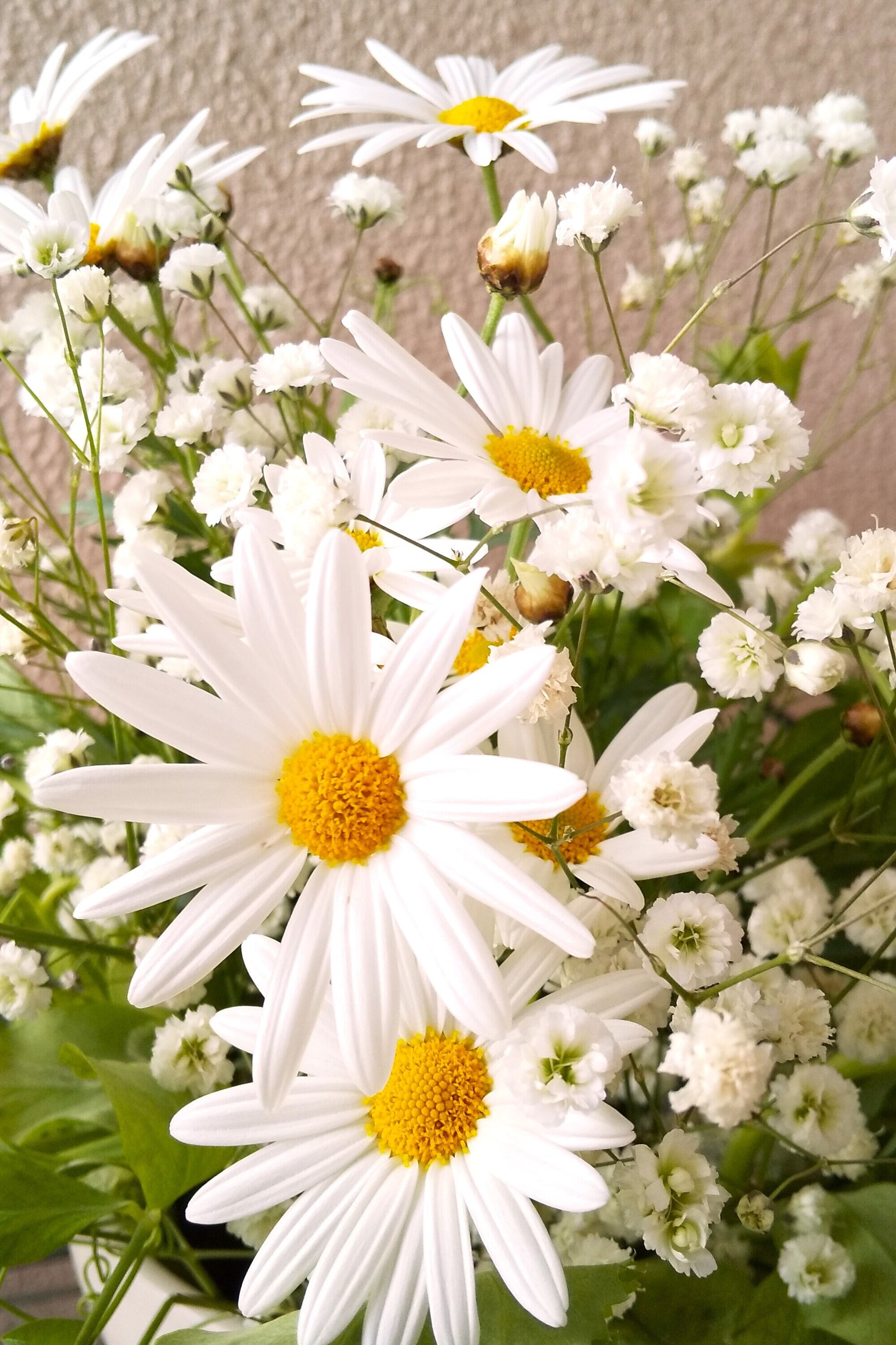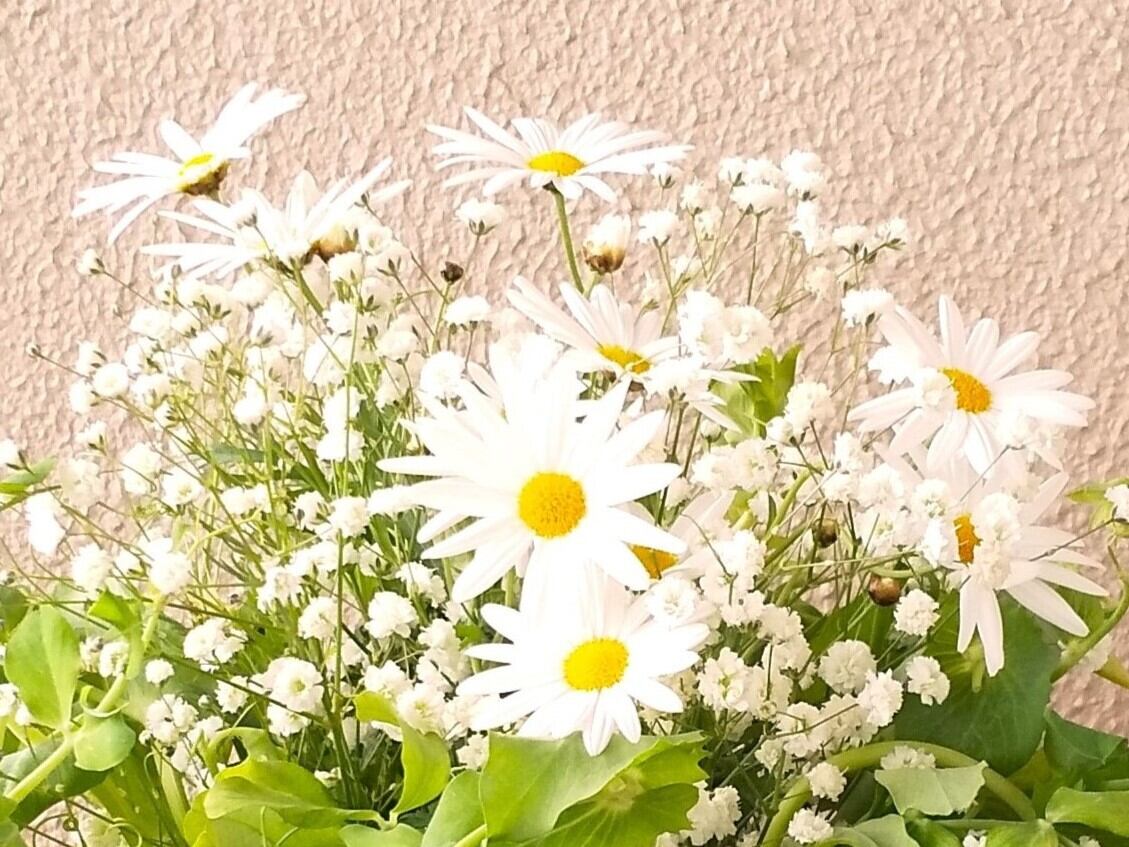 ・使用したお花・・・カスミソウ・マーガレット・えんどう豆のつる
