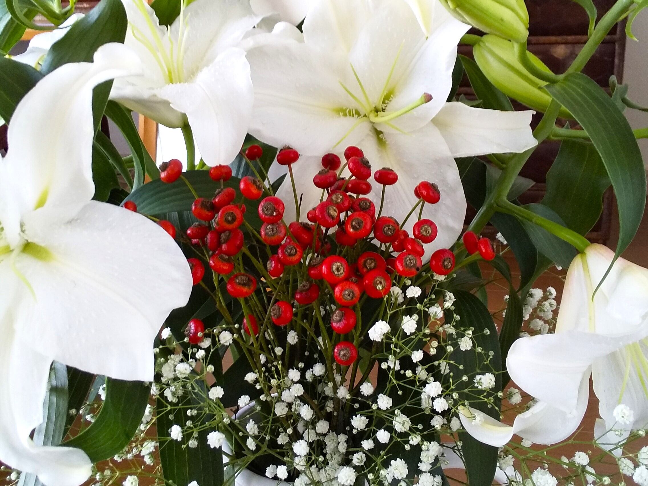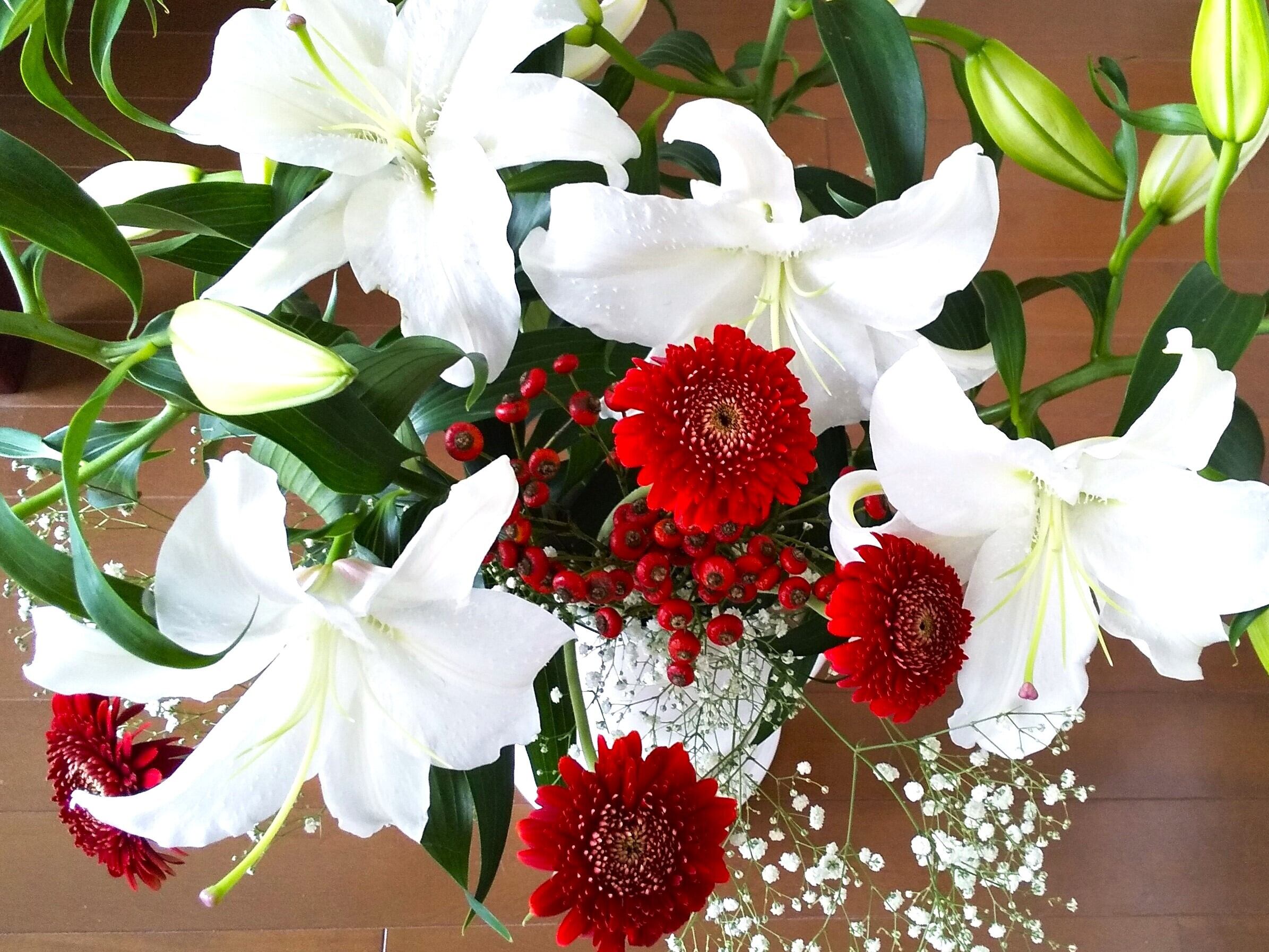 ・使用したお花・・・カサブランカ・ローズヒップ・ガーベラ・カスミソウ